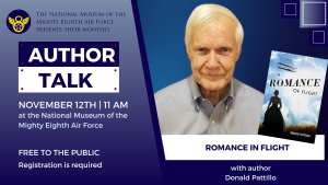 The National Museum of the Mighty Eighth Air Force’s monthly Author Talk series is proud to present author Donald Pattillo, who will be discussing his book Romance in Flight. This program will take place on November 12th at 11:00 am at the museum.