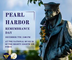 The National Museum of the Mighty Eighth Air Force is proud to host a special event on December 7th at 2 pm to commemorate Pearl Harbor Remembrance Day. Sponsored by the Navy League of Savannah, this event will feature keynote speaker Captain Leonard Jones, along with readings, music, and a special tribute to Pearl Harbor survivors and WWII veterans.